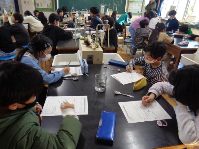 12月9日(火)1・2組合同の理科の様子です。今日は学年で学習を進めました。学級の垣根を越えて、協力して学ぶことができました。