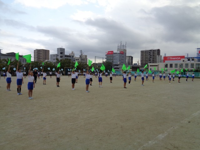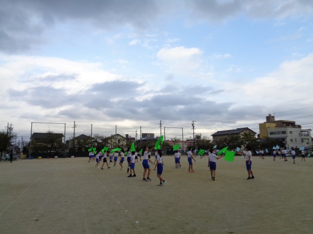 10月14日(火)5年生と合同で運動会の音遊の練習を行いました。6年生は校舎に向かって演技をします。小学校生活最後の演技のために、練習を積んでいます。応援よろしくお願いします。