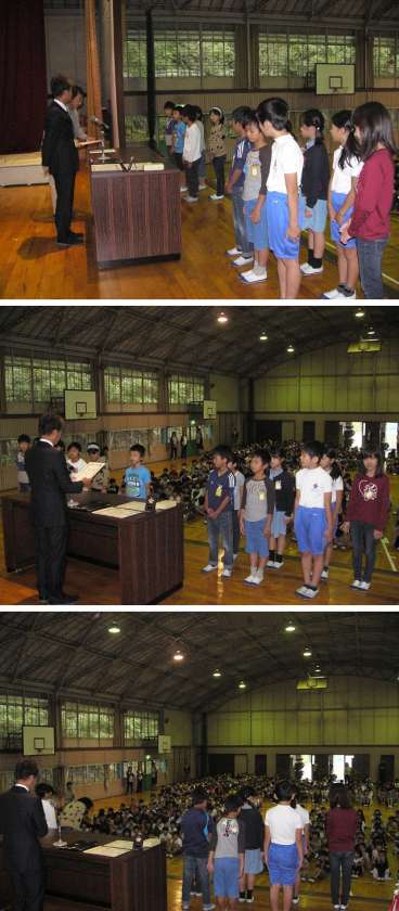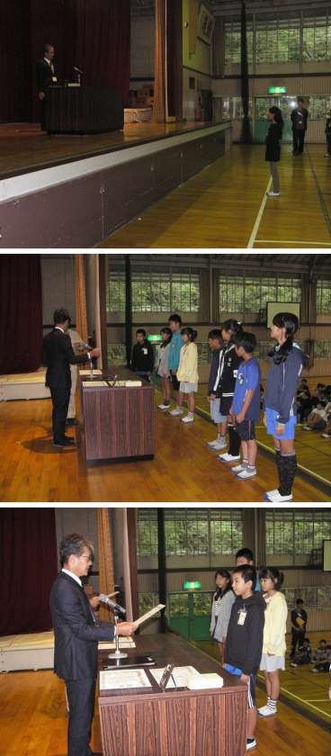 今日の朝会では、後期児童会役員・学級委員の認証が行われました。坂下小学校や各クラスのためにがんばろうと立候補してくれた皆さんです。学級で応援してくれた皆さんといっしょにさらに素晴らしい坂下小学校にしてください。