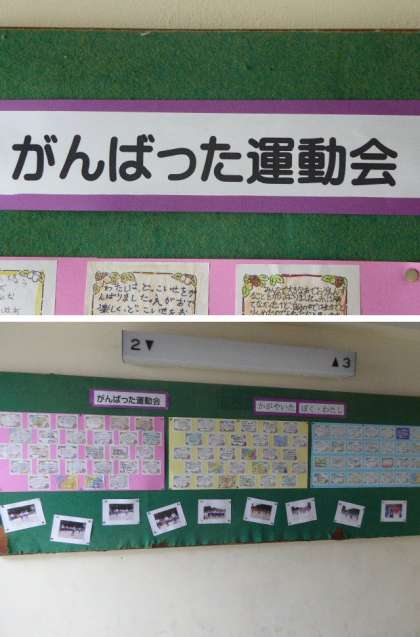 1年生は図工の作品、2年生は道徳の意見のカード、4年生は運動会を終えての感想、とそれぞれみんなのがんばるがよく表れていました。