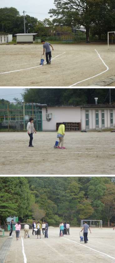 今日の授業後に先生方が交通安全教室の線を引いてくださいました。みんなが交通安全に気をつけてくれることを願って先生方が一生けんめいがんばりました。明日は皆さんで有意義な交通安全教室にしてください。