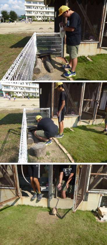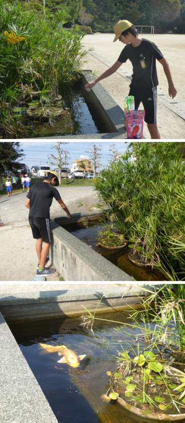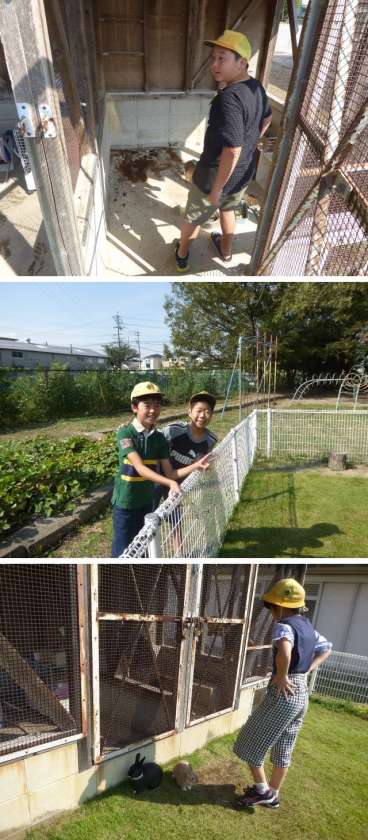 観察池のコイやメダカ、ウサギ小屋の掃除など、本当に毎日ありがとうございます。コイやメダカ、クロメや茶々丸も元気です