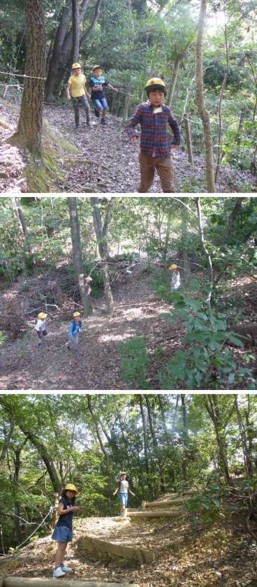 自然観察林で秋の遊びを工夫しています。