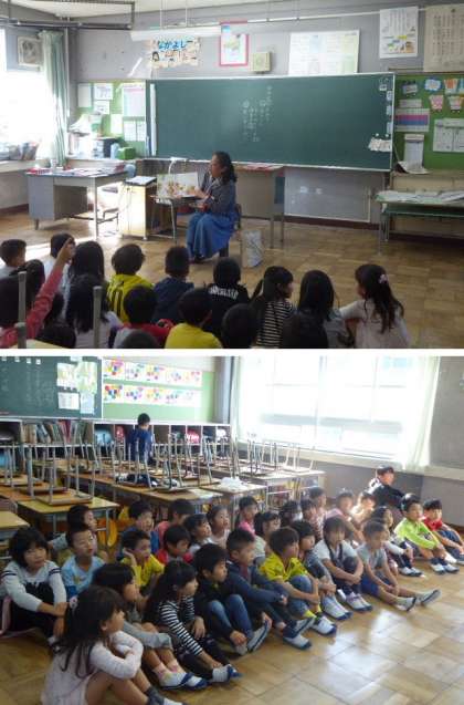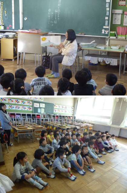 今日は1年生の教室で楽しく読み聞かせをしていただきました。ありがとうございました。