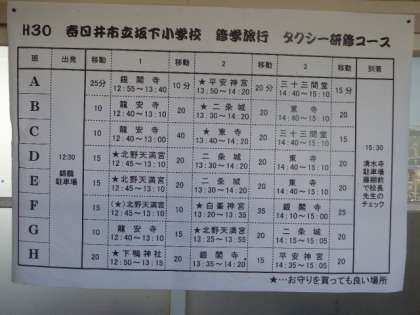 タクシー研修のコースが掲示してあります。修学旅行がだんだん近づいてきていますね。
