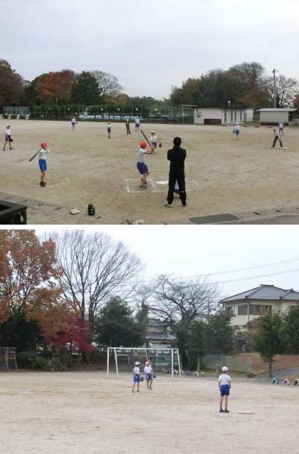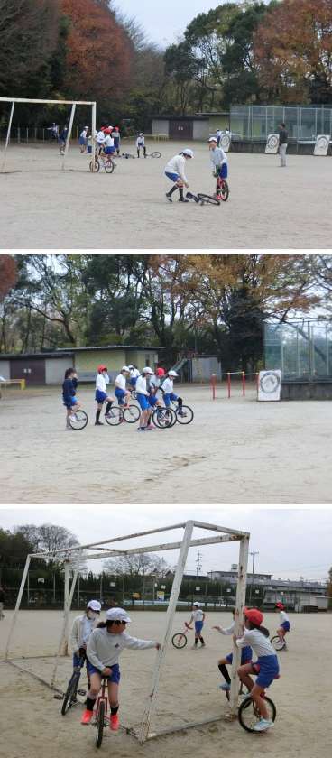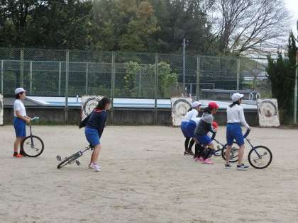 運動場ではソフトボールクラブと一輪車クラブの皆さんが楽しい時間を過ごしていました。