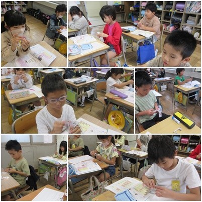 算数の学習の様子です。「九九カード」を使って、何度も何度も九九を唱えていました。