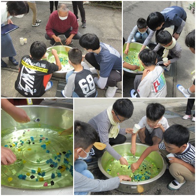 生活単元学習では、「宝すくい」ゲームをしました。