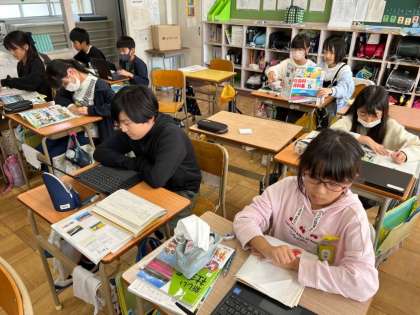 3組は社会の学習です。どのように日本の魚の鮮度が保たれているのかの工程を確認しました。各自で動画や資料集を活用してまとめている様子が見られました。
