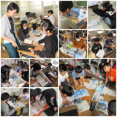社会の学習では、水産業について学んでいます。「魚のとり方を探ろう」をめあてに、様々なを方法で調べていました。
