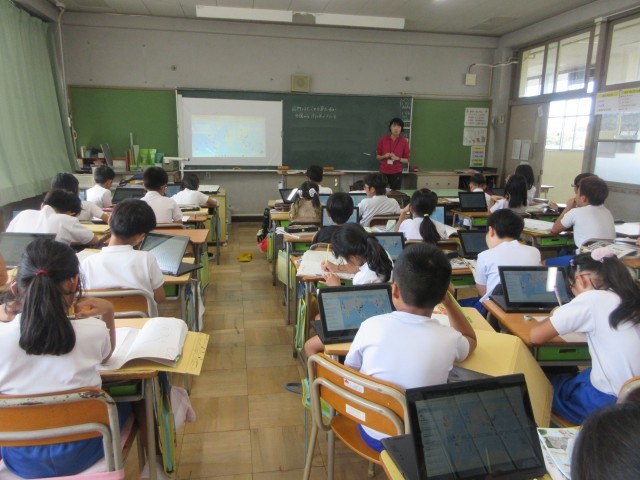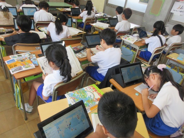 道徳では、「大切なものはなんですか」の学習をしました。自分の考えをタブレット端末に入力したり、発表したりして学びを深めました。社会では、スーパーマーケットに置いてある商品がどこからくるのかについてまとめました。世界から運ばれていることを知り、そのわけについて自分なりの意見をもちました。