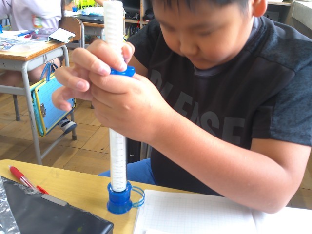 理科は、とじこめた空気を押したときの体積の変化について学習しました。