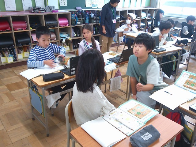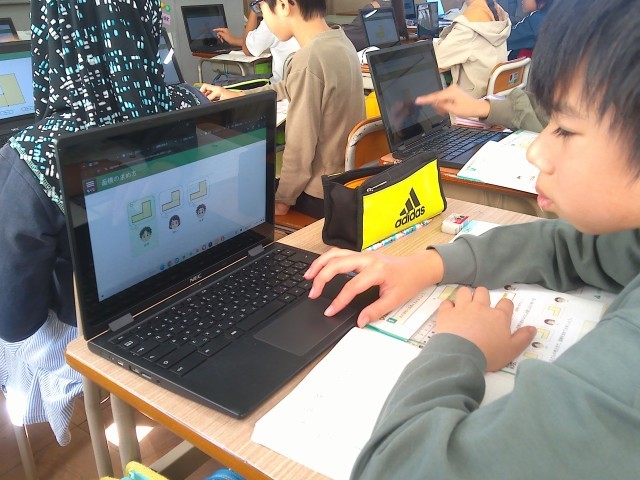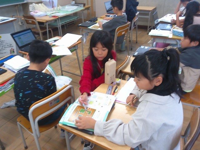 算数は、面積の学習を進めています。「平方センチメートル」という新しい単位を学習したり、公式を使って、複雑な図形の面積を求めたりしました。