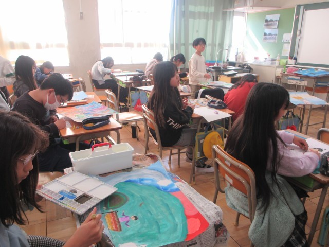 外国語ではスピーチテストをしました。教室では、友達同士で会話をして練習をしていました。算数では、面積の学習をしました。プリントで解き方の確認をしました。図画工作では、「言葉から思いを広げて」の作品を作りました。色や形を考えながら筆を進めていました。
