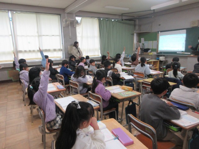 算数では、三角形や四角形の学習をしたり、計算問題を習熟させたりしていました。三角形や四角形の定義をみんなで確認しました。
