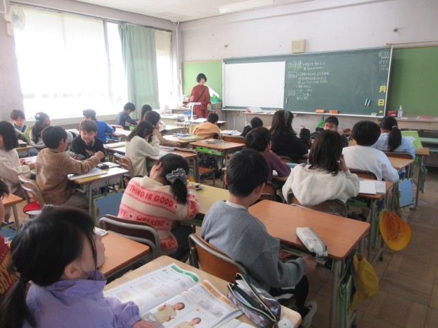 理科では、「物の重さ」の学習をしています。同じような形のさとうと塩の重さについて調べます。正しい実験方法の説明を、みんな真剣に聞いてノートにまとめていました。