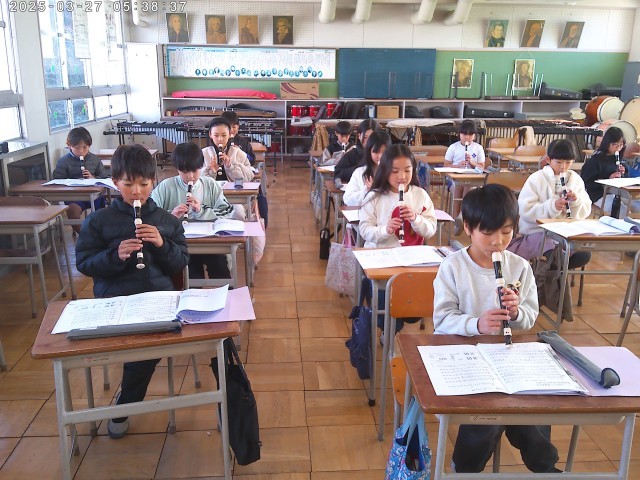 4年生の様子です。音楽は楽器別に分かれて、「ラ クンパルシータ」の練習しました。