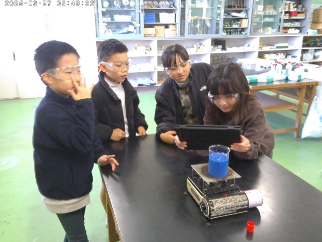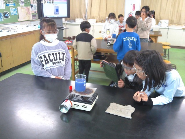 理科では、物のあたたまり方の学習で水のあたたまり方を調べる実験をしました。