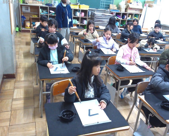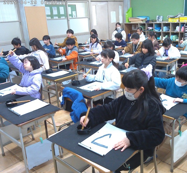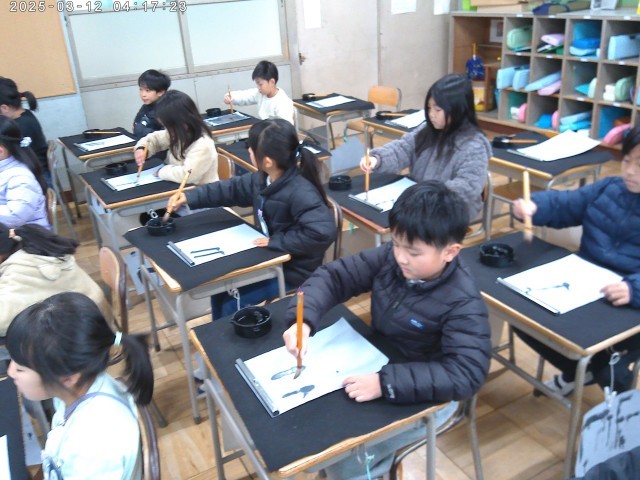2年生書道科では、「力」の字を行いました。おれとはねの筆使いに注意して取り組みました。
