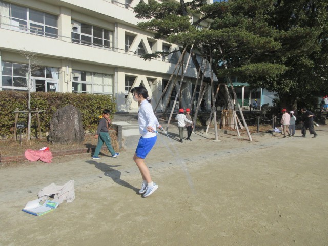 比較的暖かい日だったので、休み時間になると外に出て遊ぶ姿がたくさん見られました。最近は縄跳びをがんばっている子が多いです。何回も何回も練習をして跳べるようになると、とても嬉しそうでした。