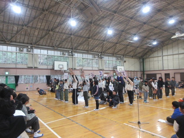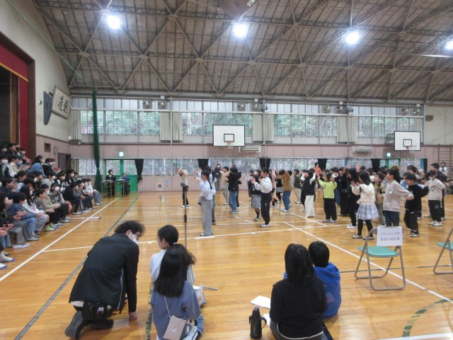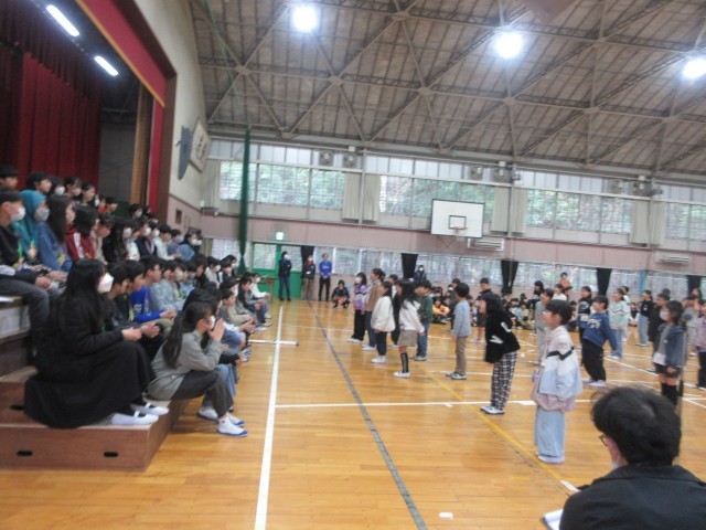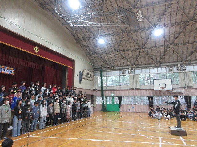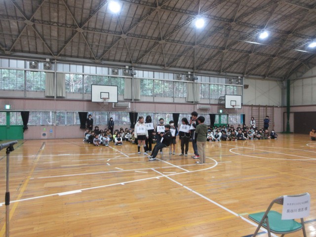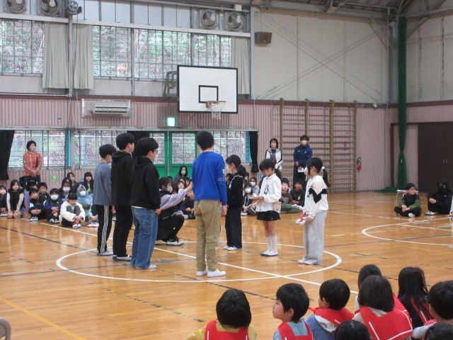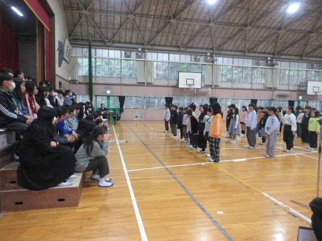 「卒業生を送る会」と「感謝の会」が行われました。感謝の会では、いつも見守ってくれている地域の方に感謝の気持ちを伝えました。送る会では、各学年が6年生にありがとうとおめでとうの気持ちを込めて出し物のプレゼントをしました。歌や合奏、ダンスに寸劇と、さまざまな出し物がありました。6年生からは迫力ある歌声のプレゼントがありました。