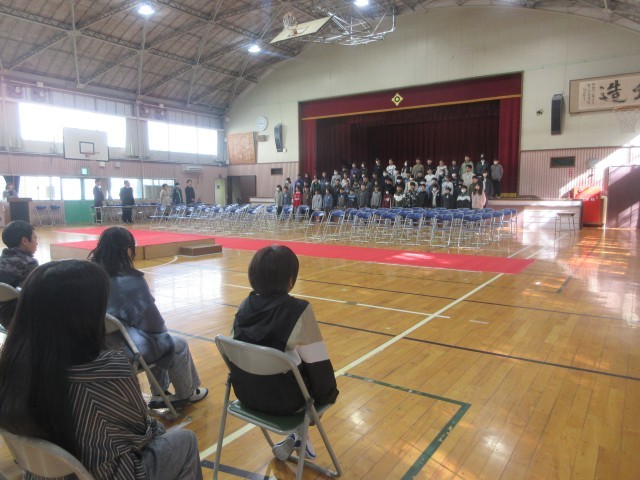 5年生が参観し、緊張した雰囲気の中、とても立派に練習を行うことができました。5年生からも6年生へメッセージを送りました。いよいよ来週が卒業式です。残りの小学校生活を大事に過ごしてくださいね。