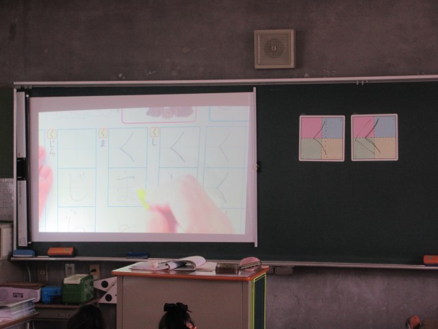 1年生はひらがなを習い始めました。はじめは「く」でした。書く時の姿勢や鉛筆の持ち方に気を付けて一生懸命書きました。