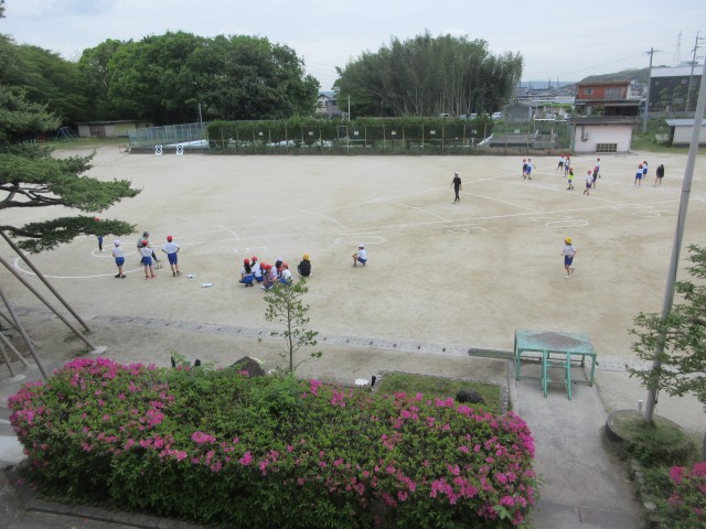 気持ちの良い天候の中、体育の学習をしました。雲梯や登棒、ジャングルジムの遊具を使って体つくり運動をしました。あきらめずにぶら下がったり登ったりして体を動かすことを楽しみました。