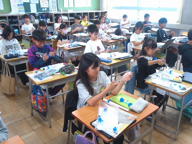 外国語ではスピーチテストをしました。教室では、友達同士で会話をして練習をしていました。算数では、面積の学習をしました。プリントで解き方の確認をしました。図画工作では、「言葉から思いを広げて」の作品を...