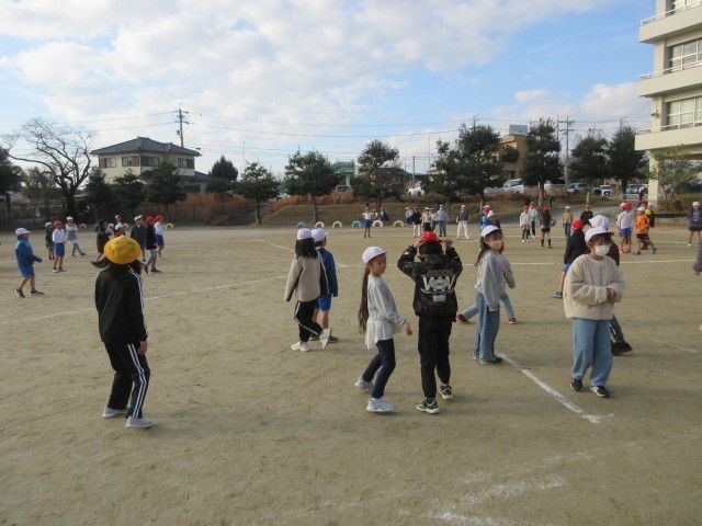 生活科の「ふゆをたのしもう」の学習で、凧揚げをしました。冬らしい北風が吹いていたので、凧がよく揚がりました。楽しそうに夢中になって遊んでいました。