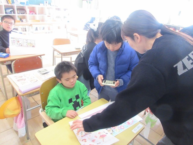 生活の学習で、校外学習の事前学習をしました。自分の好きなメニューの組み合わせて、予算の中で納まるかどうか電卓を使って考えました。来週が楽しみですね。