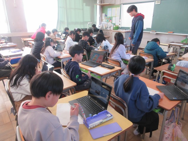学級活動では、お楽しみ会をしました。かくれんぼを取り入れた「だるまさんがころんだ」をアレンジしたゲームをしました。みんな、とても楽しそうでした。書道科では、年賀状の書き方を学習しました。友達にや遠く...