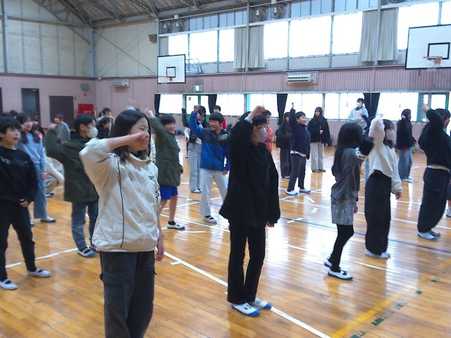 卒業生を送る会向けて出し物の練習をしています。今までたくさんお世話になった6年生に、「ありがとう」「がんばってね」「任せてね」の気持ちを届けようと、一生懸命ダンスの練習に取り組んでいます。