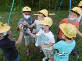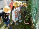 1時間目、まだ比較的涼しい時間に、1年生が虫さがしをしました。なかなか見つけられませんでしたが、ウサギ小屋の近くで大きなショウリョウバッタを見つけました。恐る恐る手を伸ばして捕まえると、「わ〜、大きい」「ちょっと硬いよ」とつかんだ感触を口にしていました。久しぶりに外に出ることができて、1年生も満足していました。