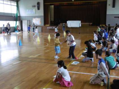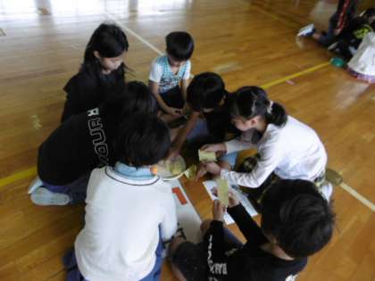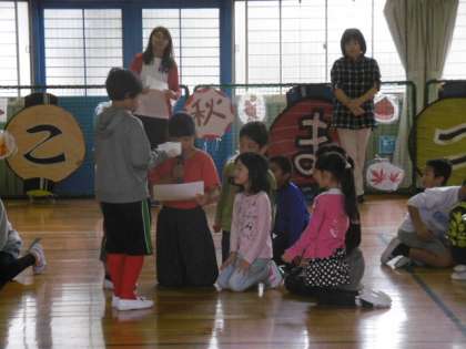 後半は、ゲームをして楽しみました。先生とジャンケンをして勝ったらパスワードの紙がもらえました。静かに始まったこのゲームも、だんだん盛り上がっていきました。全校のみんなで楽しいひと時を過ごすことができました。