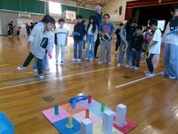 高橋先生を講師にお迎えし、4年〜6年生がたもを片手に排水溝付近にたまった落ち葉をすくいあげ、水の中の水中生物を見つけました。シオカラトンボ、イトトンボのヤゴやマツモムシなどが観察でき、ビオトープーと移されました。