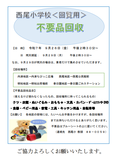 資源回収・不用品回収、予定通り【明日(9月26日(金))】実施します