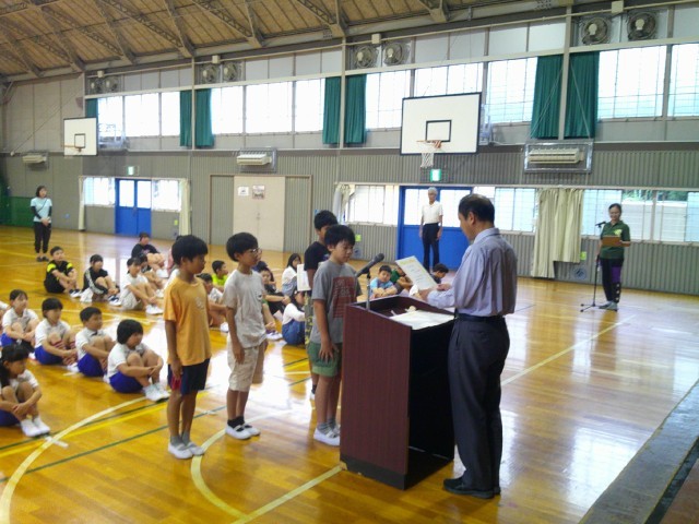 また、前期児童会役員からリサイクル活動でがんばった児童の紹介がありました。後期のリサイクル活動も協力をお願いします。