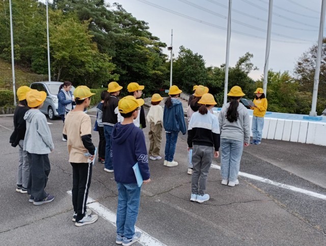 少し冷たい空気を感じながら、全員そろって外で朝のつどいを行いました。