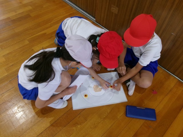 チームに分かれて、どうすればたくさん点数が取れるか、どうすれば守ることができるかを相談しながら作戦を立てました。