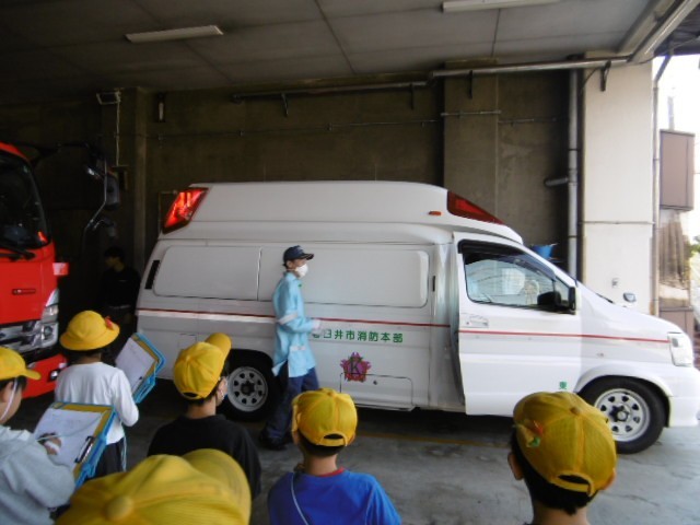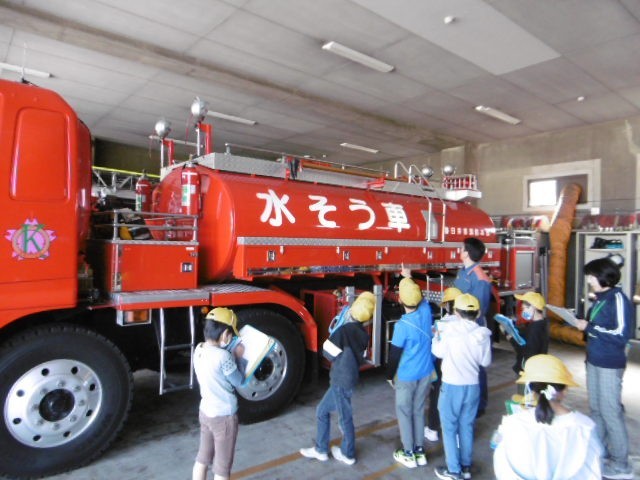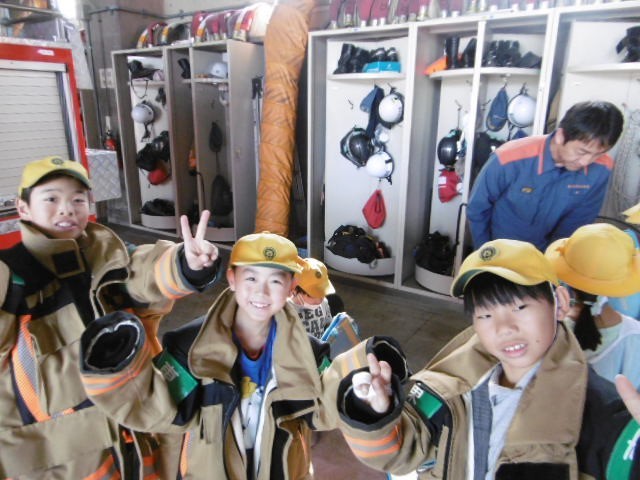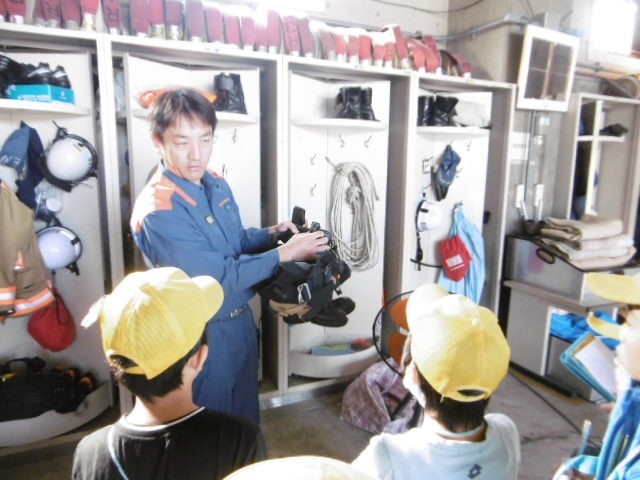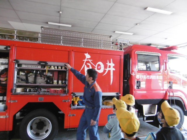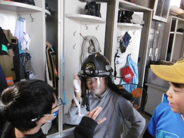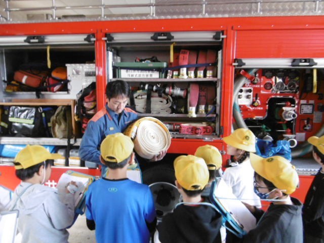 11月7日(金)に3年生が消防署見学をしました。バスに乗って、春日井消防署東出張所に行きました。