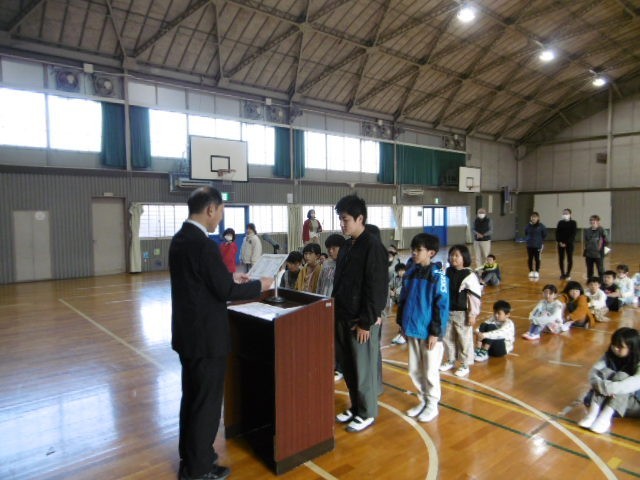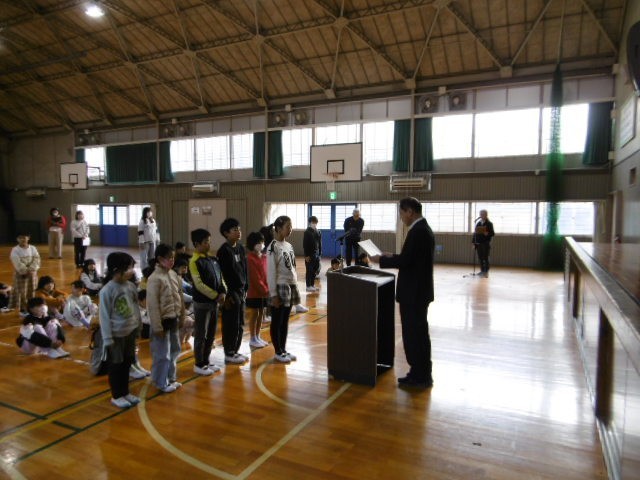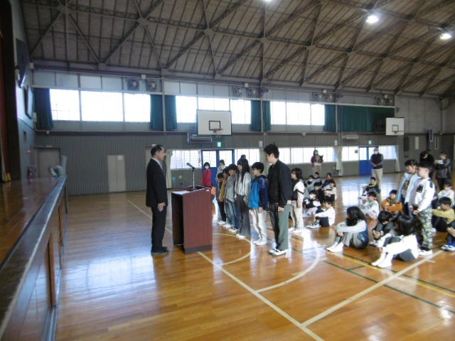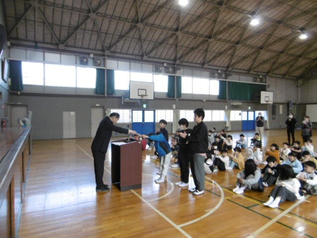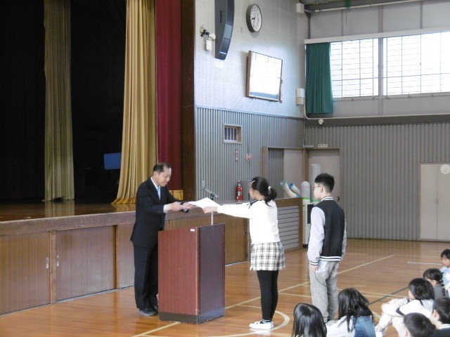朝会では、読書感想文コンクール・教育展(書写の部)・教育展(図工の部)・尾教研書写作品コンクールの表彰があり、多くの児童が賞状を受け取りました。みなさん、本当によくがんばりました。