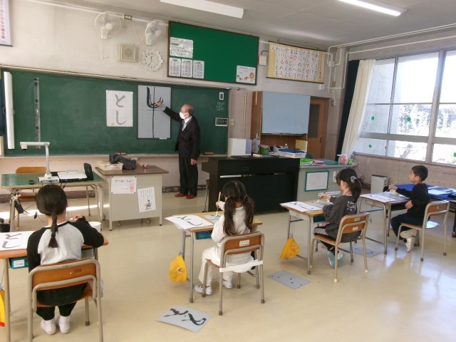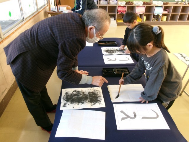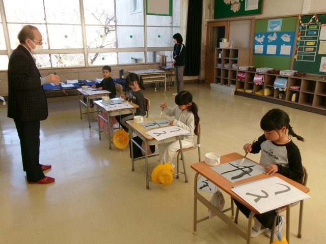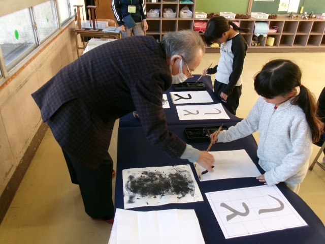 書道科の学習では、習字に取り組みました。1月の書初め大会に向けて、「とし」の字を書く練習をしています。筆の運び方や力の入れ方を意識しながら、集中して取り組む姿が印象的でした。