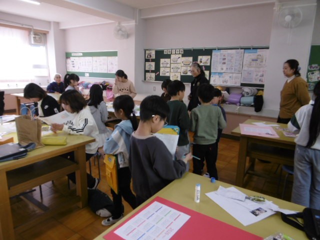 文化クラブは、好みの写真やイラストなどをプリントアウトして、2026年のカレンダーを作成しました。楽しく作成していて、個性的なカレンダーに仕上がっていました。