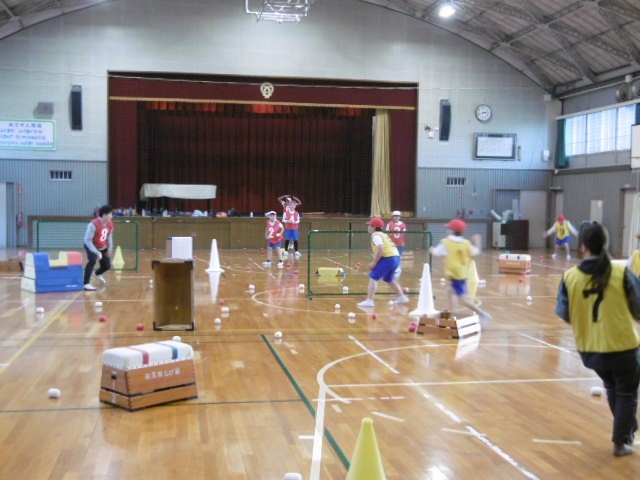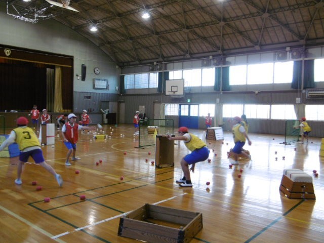 運動クラブは、玉入れの赤白の球を使って、スポーツ雪合戦をしました。作戦を考えて楽しみながら運動できました。