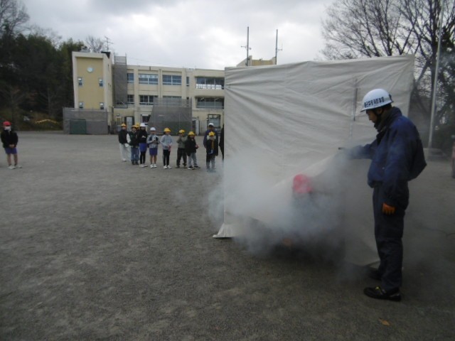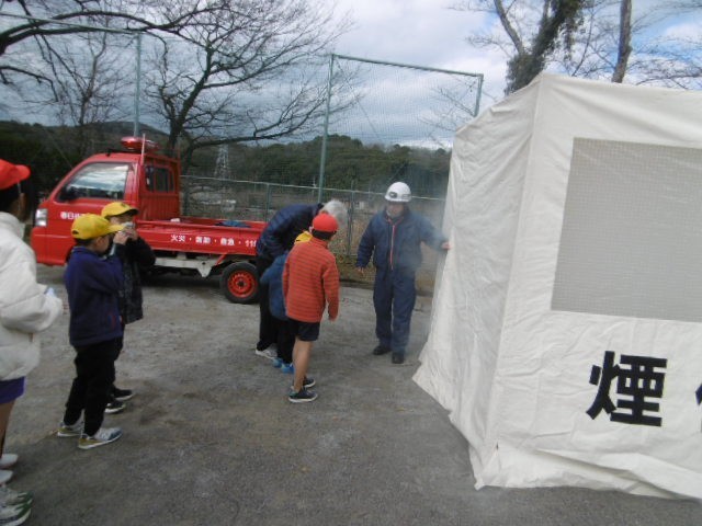 運動場にいた子、教室など屋内にいた子、それぞれが落ち着いて静かに素早く避難することができ、消防署の方からほめていただきました。