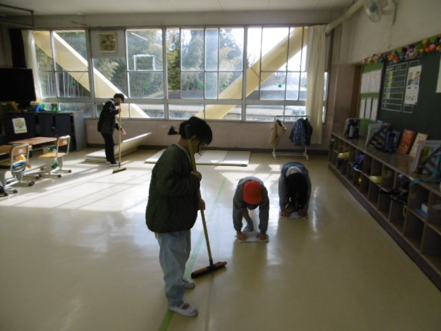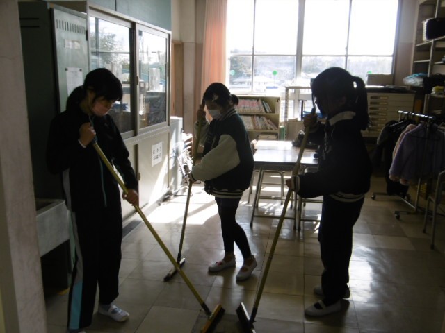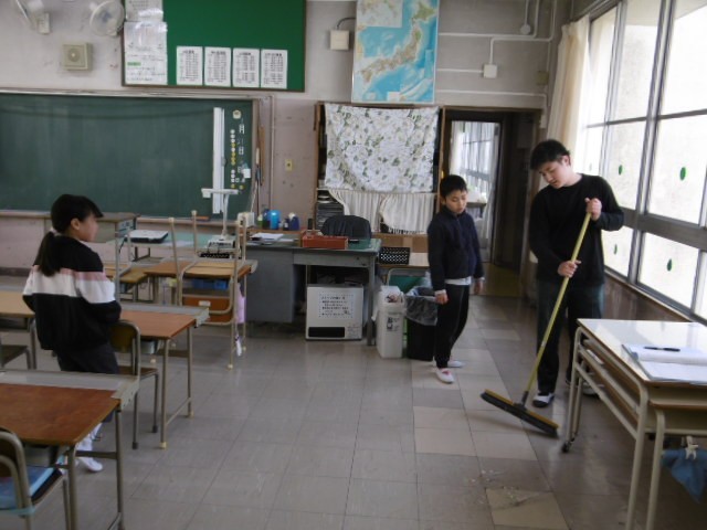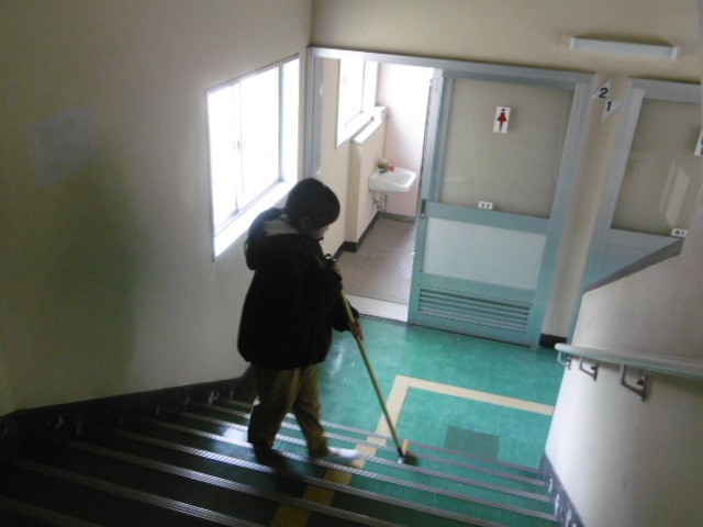 それぞれの清掃場所の人数は少ないですが、一人一人が真面目に清掃に取り組み、みんなで全校をきれいにしています。