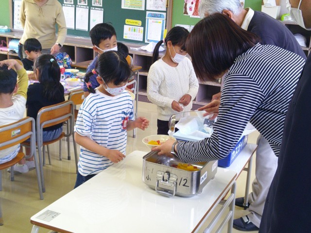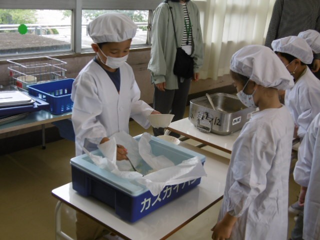 がんばって準備をして、おいしくいただきました。最後には食缶が空っぽになりました。