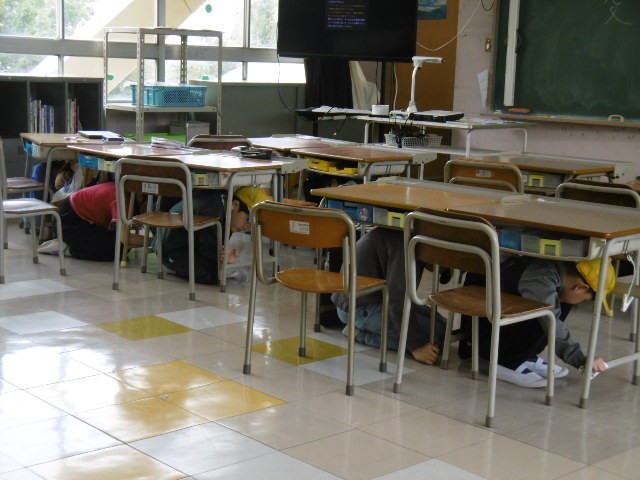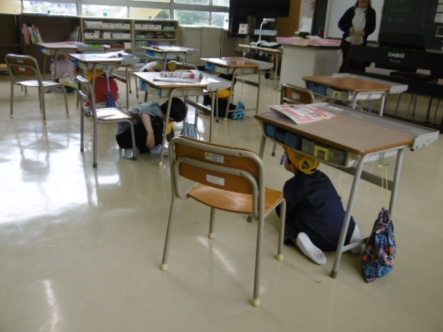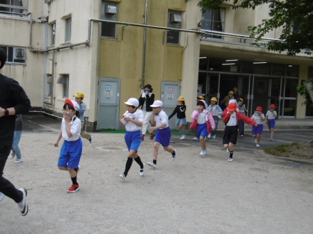 今月入学したばかりの1年生を含め、「お・は・し・も」を守って、全員が静かにすばやく避難することができました。