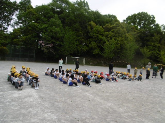 21日(火)に予定していた避難訓練を、グランドの状態がよくなかったため、22日(水)に延期して実施しました。